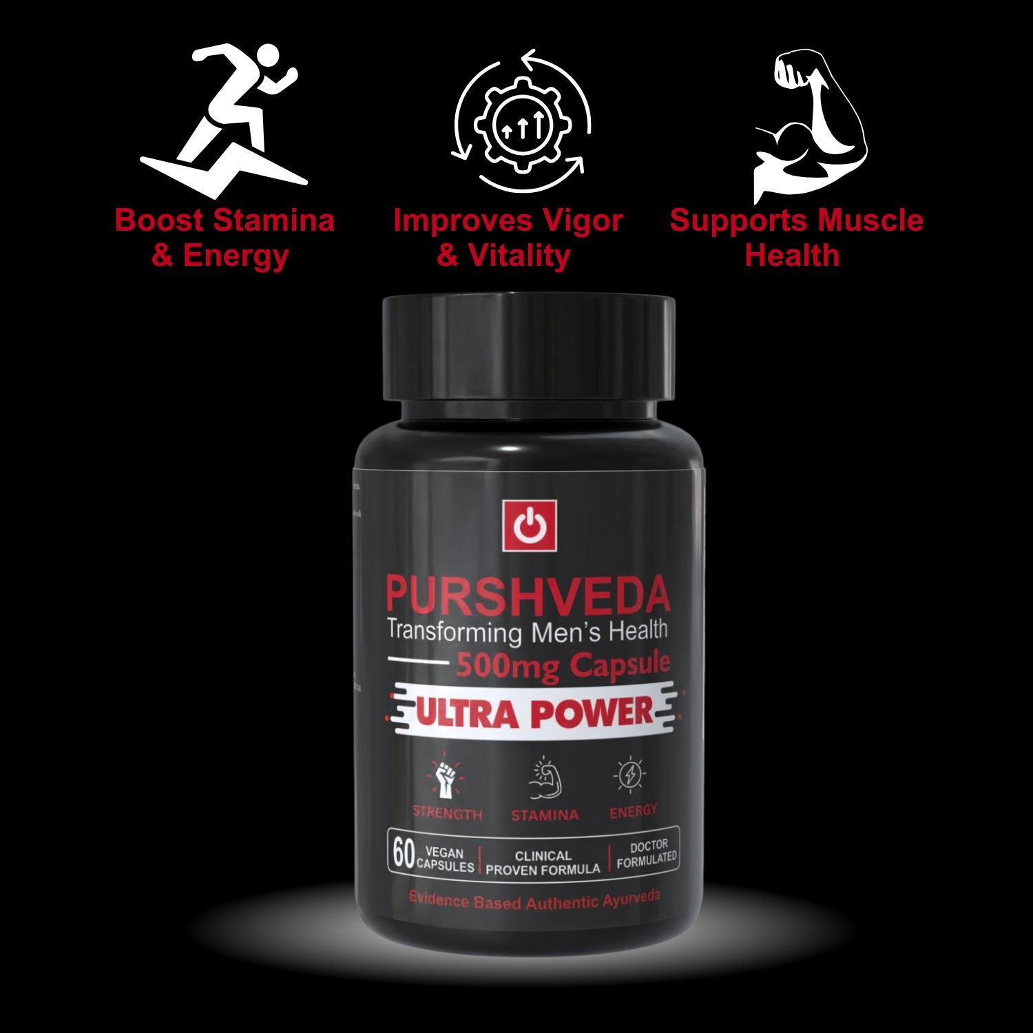 PurshVeda Vegan Capsule for Men | Pack of 60 | Strength & Vitality Support