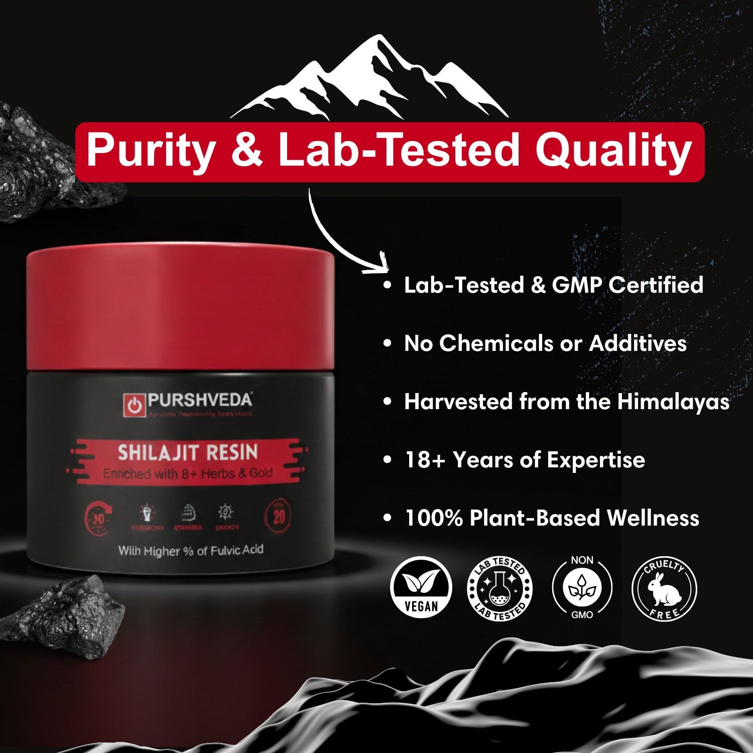 1. Shilajit – A natural energy booster that improves strength, stamina, and overall vitality.